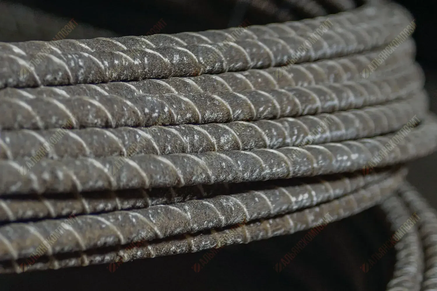 Арматура имеет внешнюю навивку из стекловолокна образуя"ребро" арматуры. Дополнительное внешнее ребро придает стержню периодический профиль, создает анкеровку в бетоне и увеличивает поверхность арматуры, что повышает сцепление стержня с бетоном.